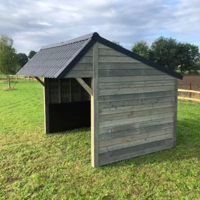 De Sutter Naturally ontwikkelde schuilstallen voor paarden die perfect aan alle wettelijke vereisten voldoen. Zo vind je in ons gamma single schuilstallen op maat van één paard. De afmetingen van het grondoppervlak bedragen aan de buitenzijde 4 op 3,30 meter. Dit is ruim voldoende voor één paard. Voor twee paarden kan je kiezen voor onze double schuilstal. Deze dubbele schuilstal is 6,15 meter breed.