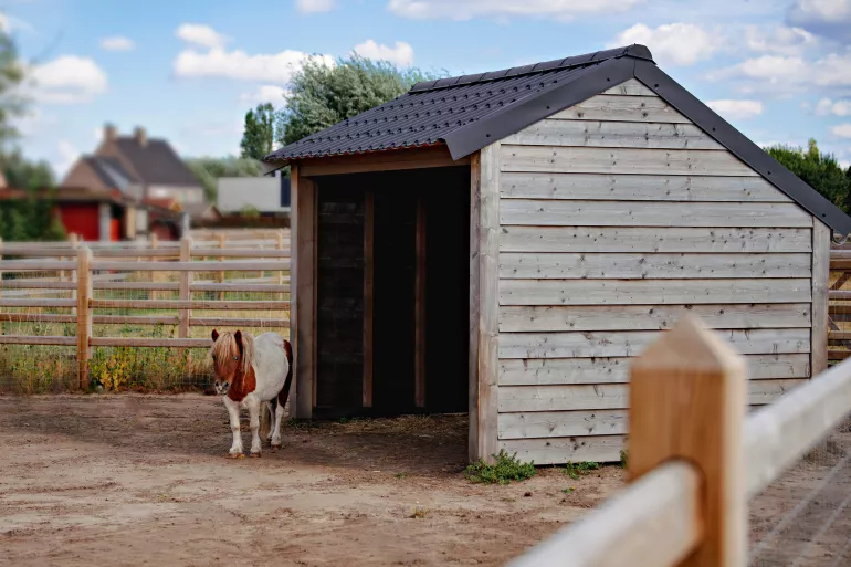 De Sutter Naturally bouwt houten schuilstallen met dezelfde focus op topkwaliteit, duurzaamheid en esthetiek als hun omheiningen. Een schuilstal biedt je dieren essentiële bescherming tegen zon, regen, wind en insecten, en draagt bij aan hun welzijn en de professionele uitstraling van je eigendom.